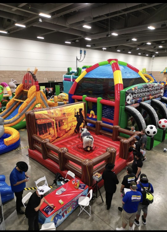 - OCCUPANCY: A maximum of 5-6 kids of equal size at one time for bounce houses, and 1 person at a time for slides is what most inflatable manufacturers recommend.